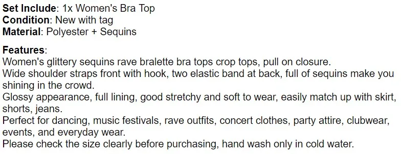 Model Number: Women Shiny Sequins Rave Crop Tops