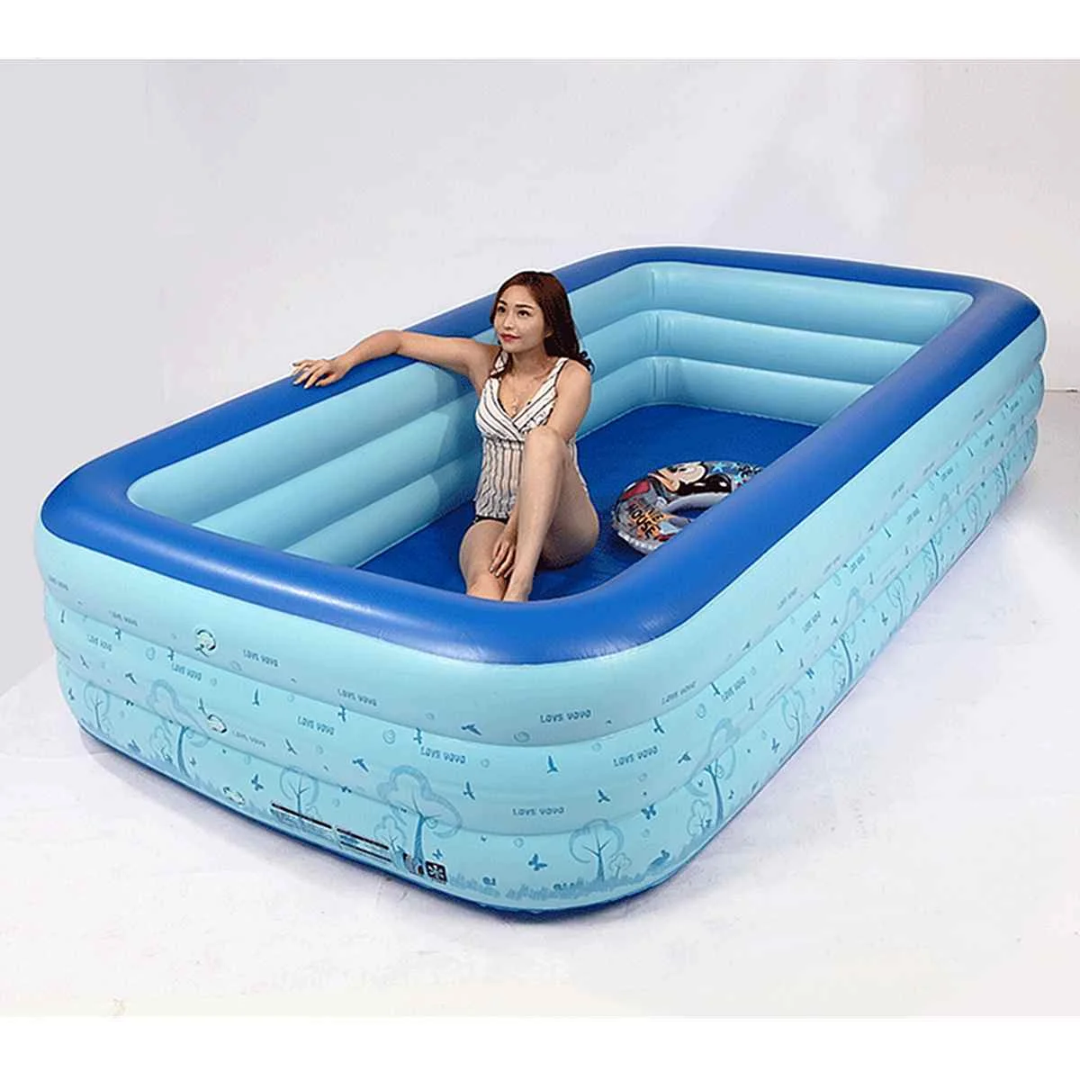 Härlig familjepool för barnfamiljer med en storlek om 300cm x 180cm x 60cm vilket gör det möjligt för flera barn och vuxna att leka i poolen samtidigt.